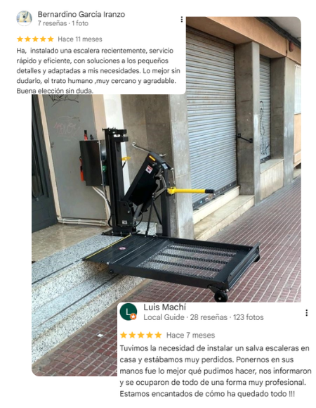 Muy buen servicio y muy profesionales. Enseguida la instalaron y siempre atentos para las revisiones. Mis padres están encantados con la silla. La recomiendo por calidad y trato tan bueno que dan a los clientes